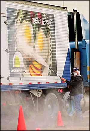 "Two weeks ago, they started washing the trucks with a high-powered hose," he said. "Then last week they put up tarps on all the fences, and that same week another neighbor saw a couple trucks loaded up with dead chickens."
